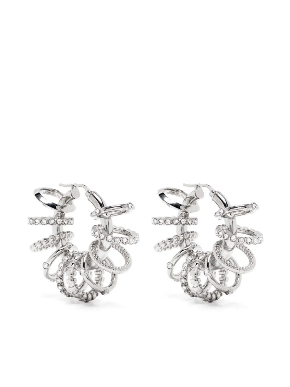 Multi Ring hoop earrings Highlights - Silver-tone - Brass - Crystal embellishment - Polished finish - Multi-rings design - Circular design - Clip-lock fastening - These earrings come as a pair. Made in Italy SIZE & FIT Model measurements Height 5 ft 10 in(1.78 m) Bust/Chest 33.07 in(84 cm) Hips 36.61 in(93 cm) Waist 24.8 in(63 cm) Measurement HEIGHT 1.61 in(4.1 cm) Weight (single earring) 23 g(23 g) WIDTH 0.7 in(1.8 cm)