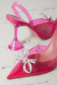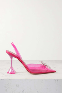 EDITORS'NOTES Amina Muaddi's 'Rosie' PVC pumps are fit for a modern fairytale. They've been crafted in Italy in a chic point-toe design that's topped with a crystal-embellished bow and are set on the label's signature fluted heel. The slingback strap will keep them in place long after the clock strikes midnight. SIZE & FIT - Fits small to size, take a half size larger than normal - Italian sizing DETAILS & CARE - Heel measures approximately 95mm/ 4 inches - Pink PVC - Slingback strap - Designer color: Lotus Pink Small to size. See Size & Fit notes.
