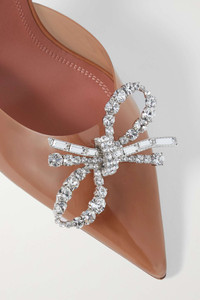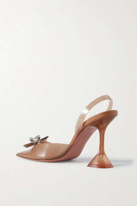 EDITORS'NOTES Amina Muaddi's 'Rosie' PVC pumps are fit for a modern fairytale. They've been crafted in Italy in a chic point-toe silhouette that's topped with a crystal-embellished bow and are set on the label's signature fluted heel. The slingback strap will keep them in place long after the clock strikes midnight. SIZE & FIT - Fits true to size, take your normal size - Those with wide feet may wish to take the next size up - Italian sizing DETAILS & CARE - Heel measures approximately 95mm/ 4 inches - Sand PVC - Slip on