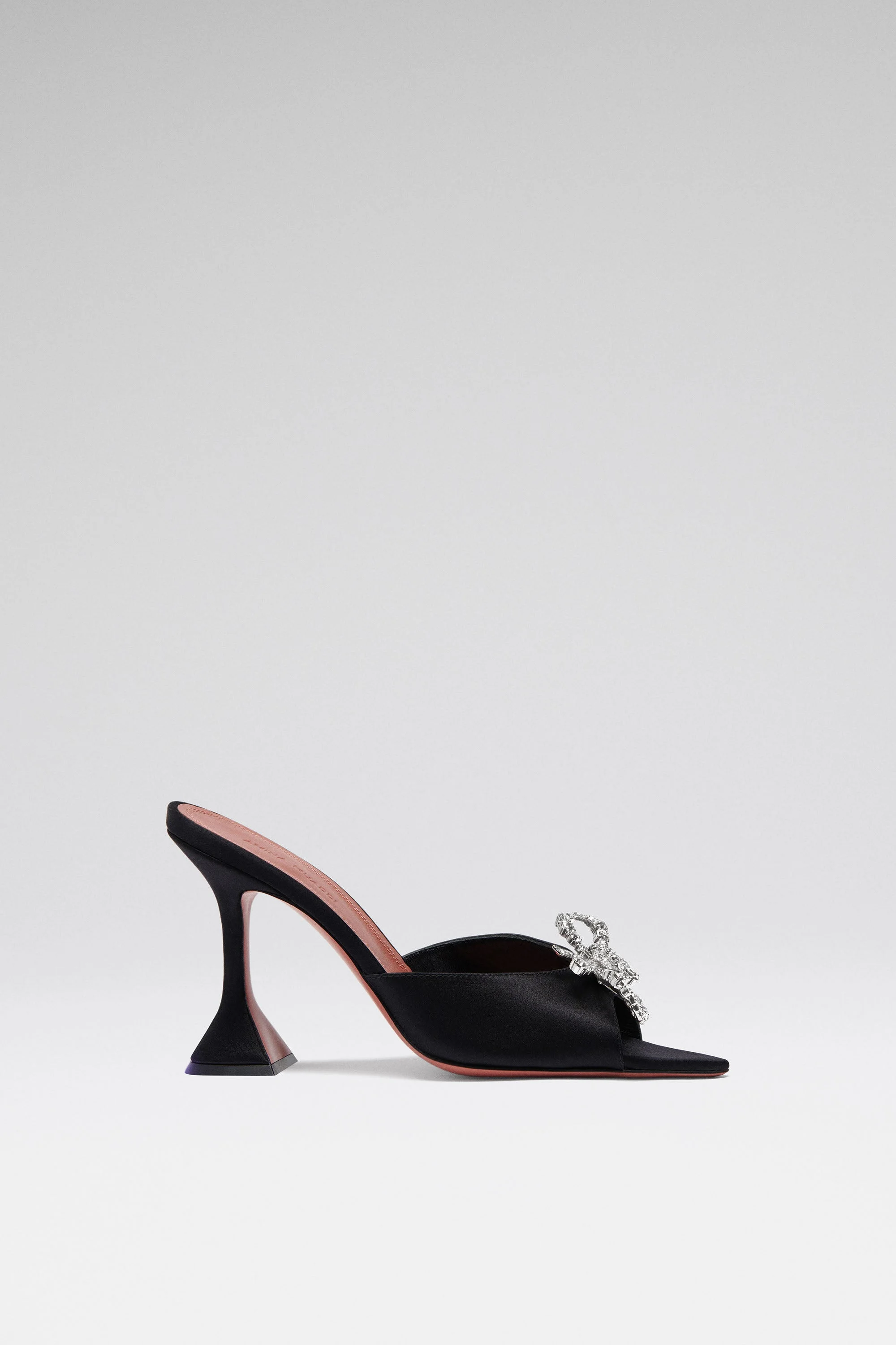 Rosie Slipper Black Satin - 95mm CL Heel - Crystal embellished bow accessory - Pointed toe - Fits true to size Composition - Upper: 100% Silk - Lining: 100% Goat - Sole: 70% Leather and 30% Rubber Origin Made in Italy