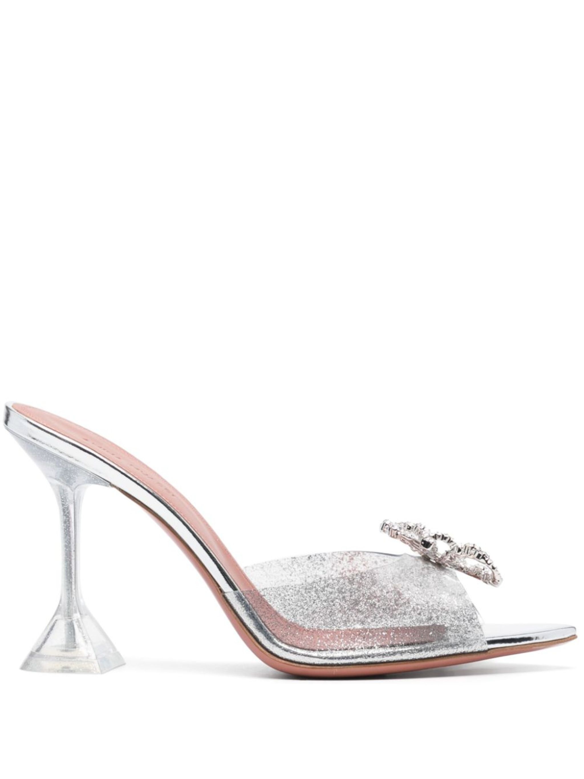 silver-tone transparent strap glitter detailing crystal embellishment bow detailing pointed toe branded leather insole high sculpted heel Size & Fit Model Measurements: Bust: 0cm Height: 0cm Hips: 0cm Waist: 0cm HEEL: 9.5cm Inside Sole Sole height: 0.5cm Fabric and Care Designer Style ID: ROSIEGLASSSLIPPERGLITTERPVC Designer Colour: GLITTER + WHITE CRYSTALS Composition: Sole: Rubber 100%, Calf leather 100%; Outer: Pvc 100%; Lining: Calf leather 100%, Pvc 100%Made in Italy