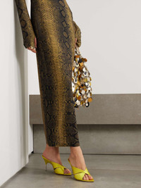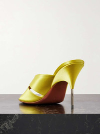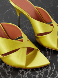EDITORS'NOTES Amina Muaddi's 'Samantha' mules are a glamorous way to add a fun pop of color to your look. They've been made in Italy from smooth satin and have wide crossover straps framing the open toes. Complement the thin silver-tone heels with white-gold jewelry. SIZE & FIT - Fits true to size, take your normal size - Italian sizing DETAILS & CARE - Heel measures approximately 95mm/ 4 inches - Lime-green satin - Slip on