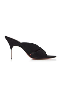 Well-crafted and unambiguously glamorous, Amina Muaddi's accessories are in high demand by international taste-makers. The brand is synonymous with vibrant hues, luxurious embellishments, and metallic shine all while being exquisitely designed to last well after the party. The 'Samantha' suede sandals have a pointed-toe silhouette with a shiny silver stiletto heel. PRODUCT DETAILS - Heel height measures approximately 95mm/ 3.75" - Slip on - Composition: suede - Made in Italy