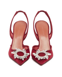 Amina Muaddi Burgundy Begum Mesh Pumps. Burgundy mesh upper, pointed toe, leather insole with logo, iconic hourglass heels. Starburst brooch decoration, slingback strap. Heel Height: 9.5 cm DETAILS Model: 15S365638BEG Composition: 50% Fabric, 50% Leather; Sole: 100% Leather; Details: 70% Glass, 30% Brass Made in: ITALY Season: FW25-26