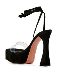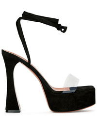 Sita 140mm platform sandals Set on the brand's signature flared heel, these Sita sandals showcase why Amina Muaddi has become synonymous with statement shoes. They are crafted from black suede and feature a transparent toe strap. Highlights - Black - Suede - Open toe - Transparent strap - Tie-fastening ankle strap - Branded insole - Platform sole - High 140mm heel Imported Composition Outer: Suede 100%, PVC 100% Sole: Leather 100%, Rubber 100% Lining: Leather 100%