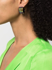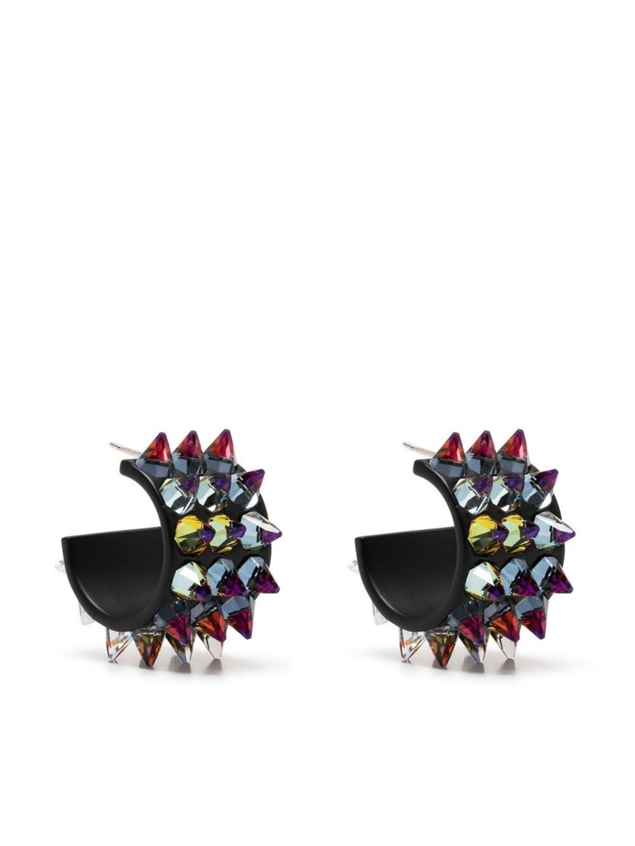 Karma spiked hoop earrings from AMINA MUADDI featuring black, acrylic glass, spike stud detailing, large hoop design and butterfly clasp fastening. Size & Fit Model Measurements: Height: 1.78 m Bust/Chest: 81.0 cm Hips: 87.0 cm Waist: 61.0 cm Model wears size OS Fabric and Care Designer Style ID: KARMAHOOP Designer Colour: Black Rainbow Composition: Acrylic 100%, Glass 100%Made in Italy