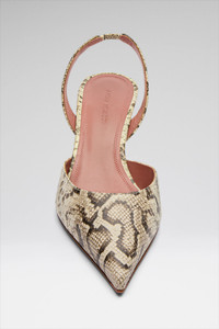 Sofia Sling 60 Shiny Snakeskin Print Leather - 60mm Kitten Heel - Crafted from Shiny Snakeskin Print Leather - Pointed toe - Fits true to size Composition - Upper: 100% GOATSKIN - Lining: 100% KID LINING - Sole: 90% LEATHER AND 10% TPU Origin Made in Italy