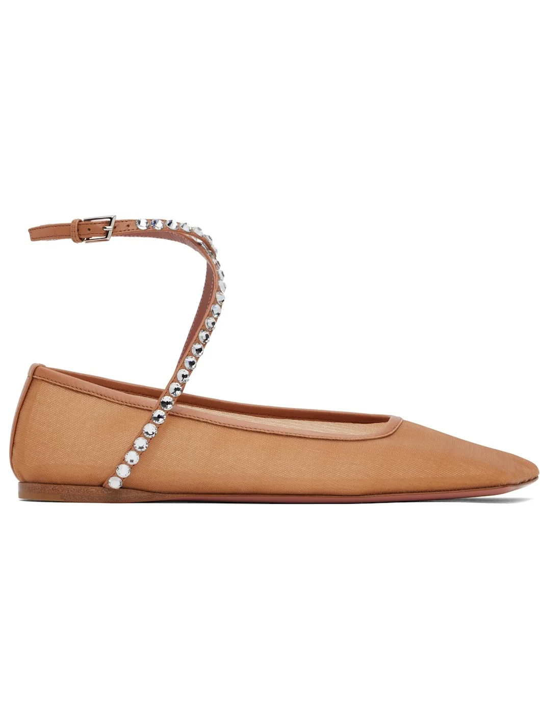 Tan Ane Mesh Crystal Ballerina Flats