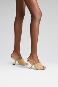Taylor Fur Slipper 90 Beige Shearling - 90mm Slanted Heel - Rounded open toe - Beige fur strap Composition - Upper: 100% Lamb Leather - Lining: 100% Goatskin - Sole: 90% Calfskin 10% TPU Origin Made in Italy