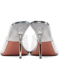 Transparent vinyl mules. · Open pointed toe · Strap at vamp · Buffed leather footbed in metallic silver tone · Stiletto heel with rubber injection · Smooth leather sole with rubber injection · Heel: H3.25" Supplier color: PVC transparent/Shiny silver Upper: polyvinyl chloride. Sole: leather, rubber. Made in Italy 251415F125027