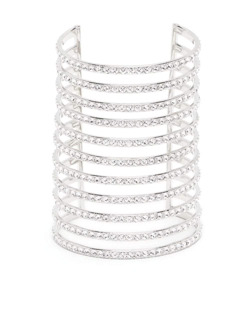 Vittoria crystal-embellished cuff bracelet Amina Muaddi's pieces are synonymous with vibrant and dazzling embellishments. Here, a silver-tone cuff with eleven rows is drenched in crystals for an elegant look. Highlights - Silver-tone - Polished finish - Crystal embellishment - Open cuff design Made in Italy SIZE & FIT Model measurements Height 5 ft 10 in(1.78 m) Bust/Chest 31.49 in(80 cm) Hips 37 in(94 cm) Waist 23.62 in(60 cm) Measurement CIRCUMFERENCE 6.73 in(17.1 cm) WIDTH 3.34 in(8.5 cm)