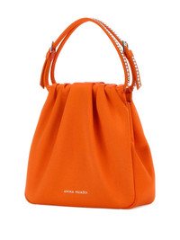 mini pleated tote bag Highlights - Orange - Gathered detailing - Top handle - Silver-tone hardware - Logo lettering Made in Italy Composition Outer: Satin 100% Lining: Lambskin 100% SIZE & FIT Measurement DEPTH 2.75 in(7 cm) HANDLE 2.95 in(7.5 cm) HEIGHT 5.9 in(15 cm) WIDTH 6.49 in(16.5 cm)