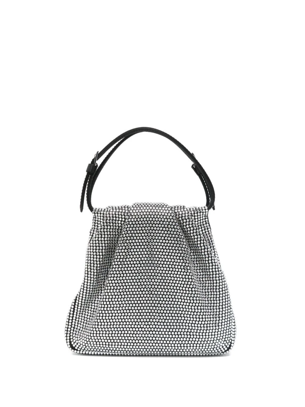 Vittoria mini bag Highlights - Black - Concealed magnetic fastening - Two adjustable top handles - Internal slip pocket Made In Italy Composition Outer: Calf Leather 100%, Crystal 100% SIZE & FIT Measurement DEPTH 3.14 in(8 cm) HANDLE 3.14 in(8 cm) HEIGHT 5.9 in(15 cm) WIDTH 6.29 in(16 cm)