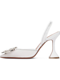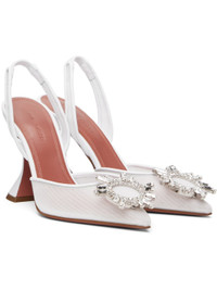 Mesh heels. · Pointed toe · Crystal-cut applique at vamp · Partially elasticized slingback strap · Logo embossed at footbed · Spool heel with rubber injection · Polished leather sole with rubber injection · Heel: H3.75" Supplier color: White Mesh Upper: textile, synthetic, leather. Sole: leather, rubber. Made in Italy 261415F122041