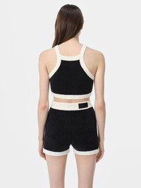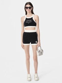 PRE-FALL 2024 WOMENSWEAR HONORS THE CREATIVE SPIRIT OF LOS ANGELES' ARTS DISTRICT AND AMIRI'S ROOTS IN ARTISANAL CRAFT. THE AMIRI ARTS DISTRICT TANK IS DESIGNED IN TACTILE KNIT CHENILLE WITH RACERBACK CONSTRUCTION AND LOGO EMBROIDERY. PRE-FALL 2024 COLLECTION MADE IN ITALY 70% COTTON, 30% NYLON