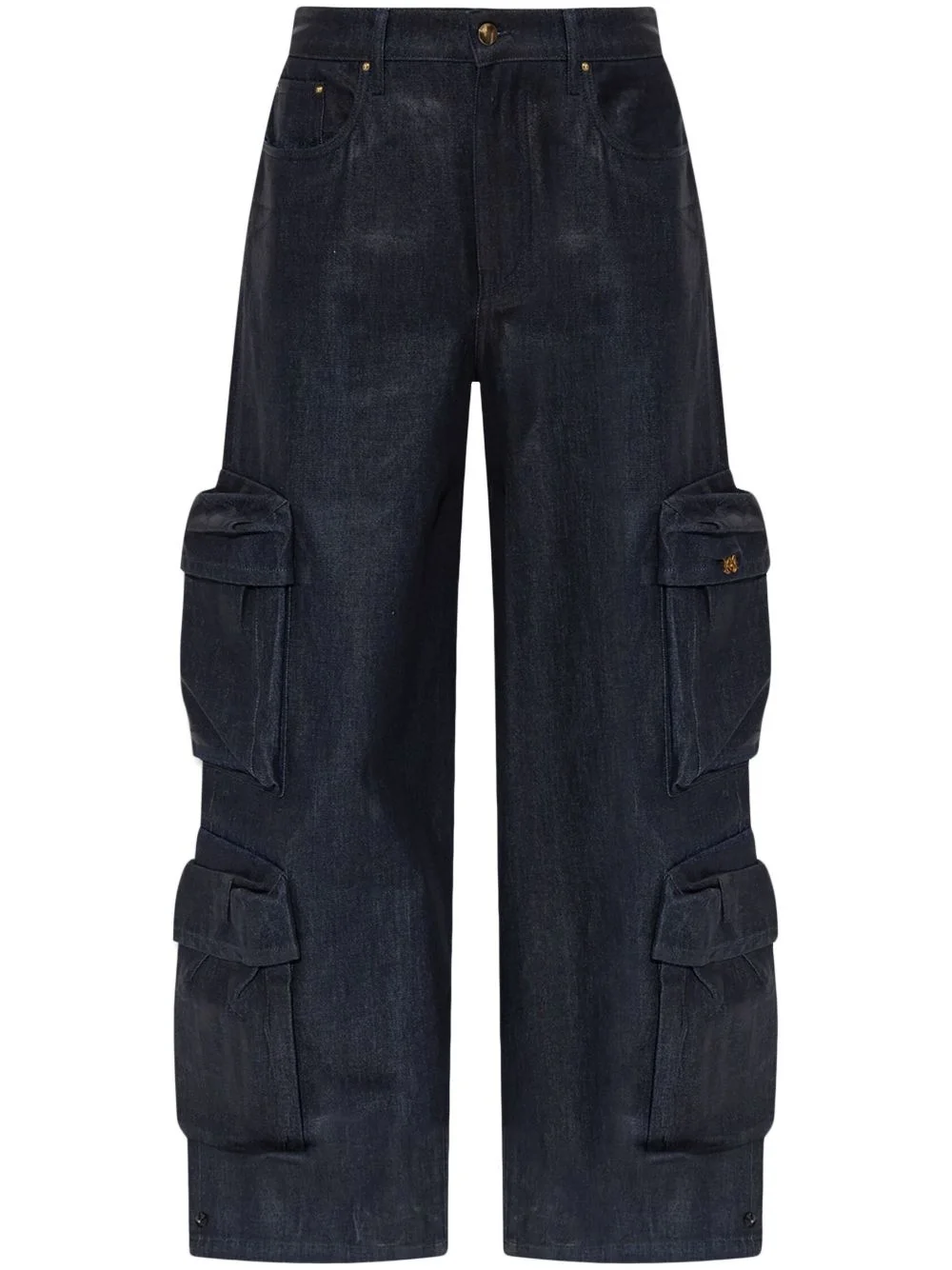 wide-leg cargo jeans Highlights - Navy blue - Concealed fly and button fastening - Classic five pockets - Multiple cargo pockets Made in Italy Composition Cotton 100%