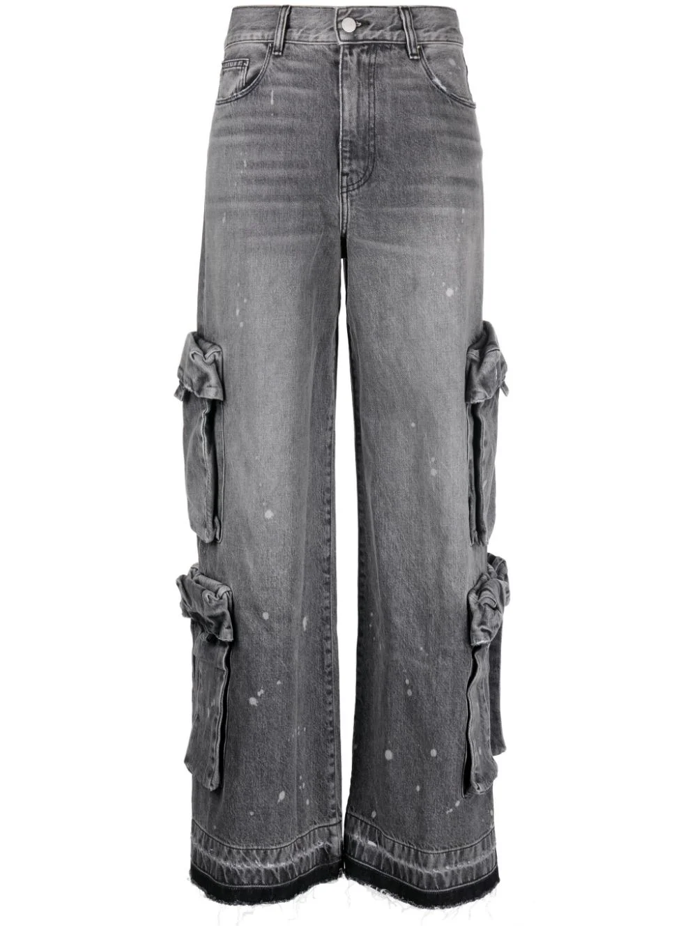 Baggy Cargo wide-leg jeans Highlights - Dark grey - Cotton - Denim - Distressed effect - High-waisted - Belt loops - Front button and zip fastening - Wide leg - Classic five pockets - Multiple cargo pockets - Long length Made in Italy Composition Cotton 100% SIZE & FIT Model measurements Height 5 ft 11 in(1.8 m) Bust/Chest 31.49 in(80 cm) Hips 36.61 in(93 cm) Waist 24.4 in(62 cm) FittingInformation Designed with a wide leg cut, these jeans allow for a close fit at the waist and offer a loose and roomy fit over the leg Sturdy and hard-wearing, this denim piece offers no stretch This piece fits true to size – take your usual size Washing instructions Dry Clean Only