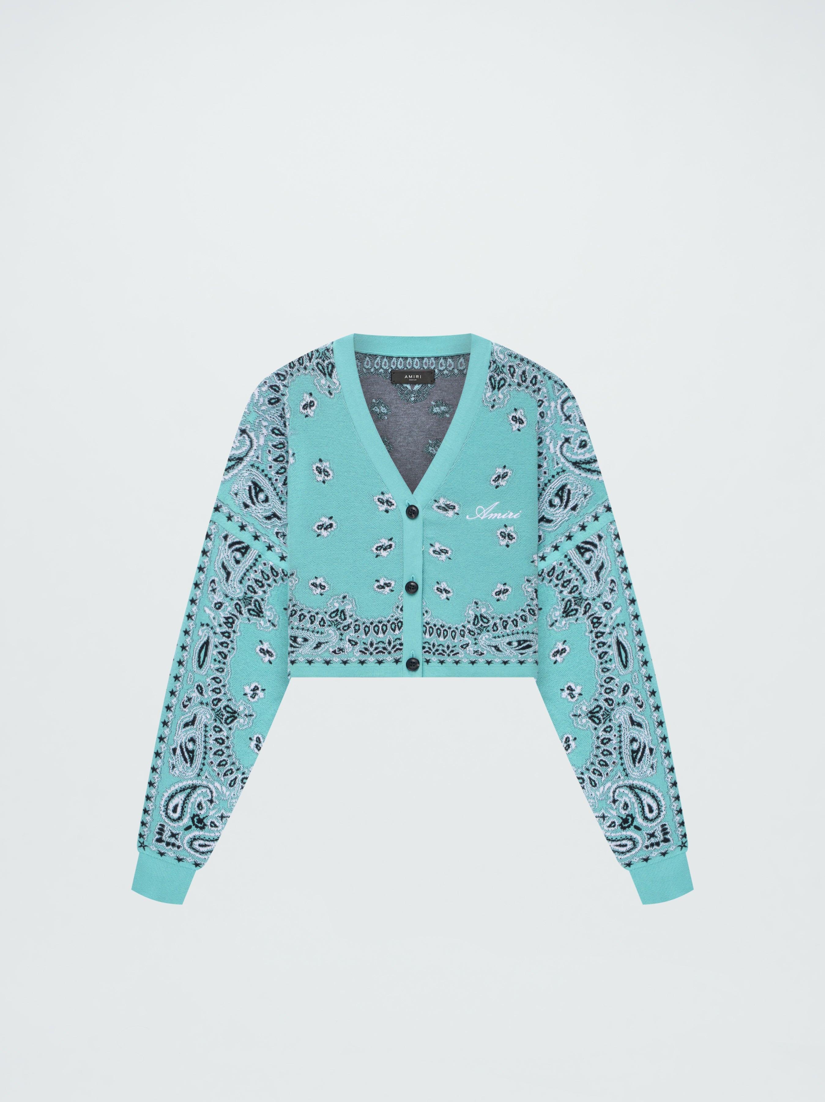 THIS RELAXED-FIT CARDIGAN SOFTENS THE HOUSE'S SIGNATURE BANDANA MOTIF THROUGH LUXE EGYPTIAN KNIT COTTON. CRAFTED WITH V-NECK CONSTRUCTION, CONTRAST BUTTONS AND RIB DETAILING, THIS CARDIGAN PAIRS SEAMLESSLY WITH THE BANDANA PANTS OR BANDANA SHORTS FOR A COORDINATED LOOK OF SOPHISTICATED LEISURE. PRE-FALL 2023 COLLECTION MODEL IS 5 9" AND WEARS A SIZE SMALL MADE IN ITALY DRY CLEAN RECOMMENDED