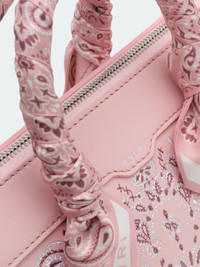 CRAFTED FROM SUPPLE NAPPA LEATHER, THIS COMPACT MINI BAG IS EMBROIDERED WITH THE HOUSE'S SIGNATURE BANDANA MOTIF. TIED BANDANA ACCENTS LEND EXPRESSIVE CHARACTER WHILE THE BAG'S TRIANGULAR SHAPE PROVIDES AMPLE ROOM FOR TRANSPORTING SMALL ESSENTIALS. TOP HANDLES AND A DETACHABLE LEATHER SHOULDER STRAP OFFER MULTIPLE CARRYING OPTIONS, MAKING THIS BAG AN IDEAL COMPANION FOR BOTH DAYTIME OR EVENING EXCURSIONS. SPRING-SUMMER 2024 COLLECTION MADE IN ITALY 100% LEATHER SPOT CLEAN/LEATHER SPECIALIST RECOMMENDED
