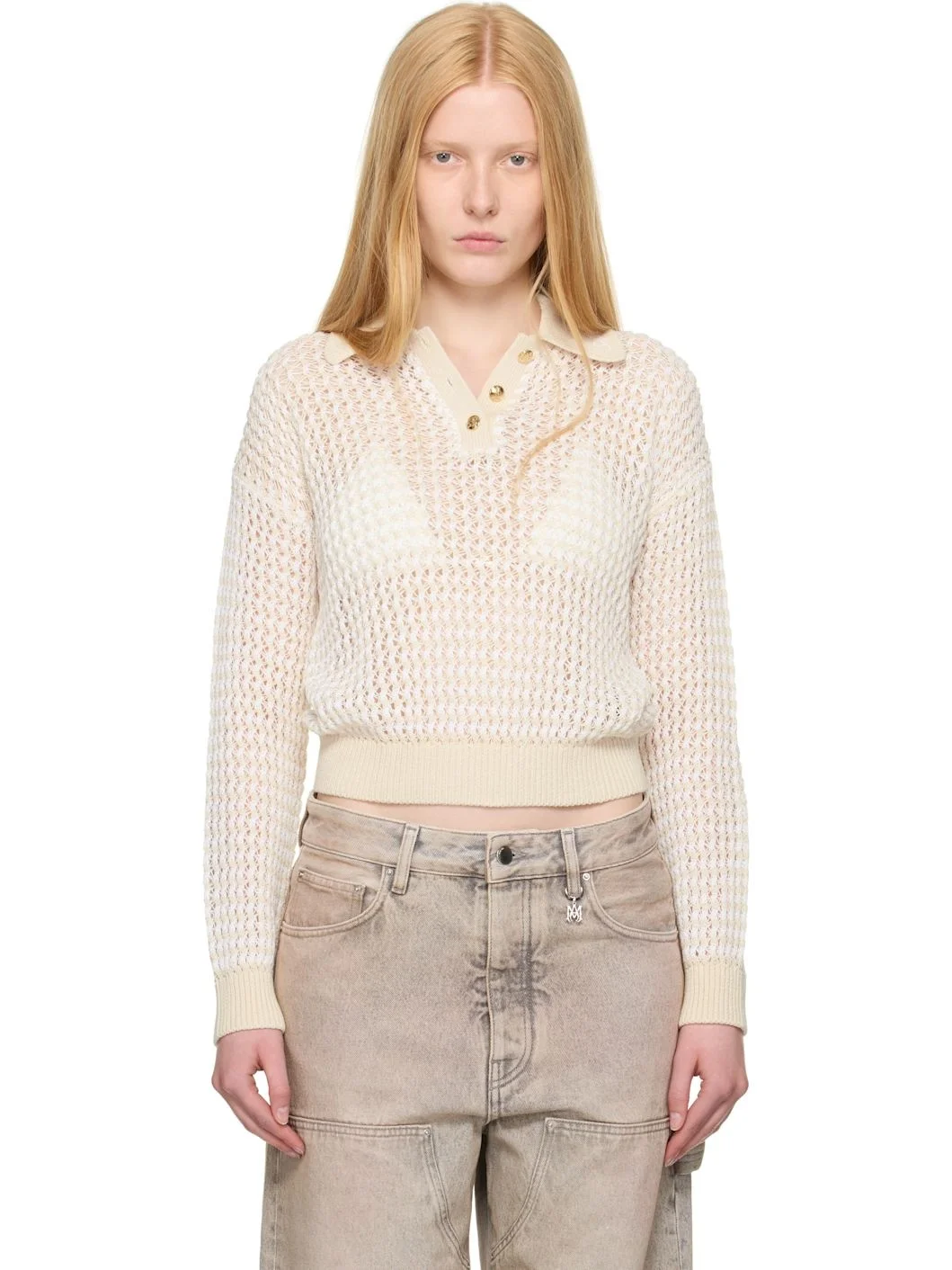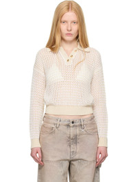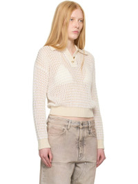 Crocheted cotton polo. Rib-knit trim and stripes throughout. · Logo embroidered at spread collar · Three-button placket · Logo hardware at back collar · Cutout at back · Logo-engraved gold-tone hardware Supplier color: Alabaster 100% cotton. Made in Italy 252886F108001