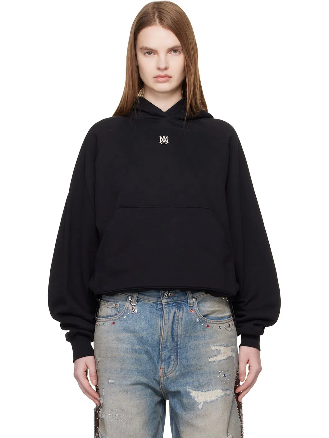 Cotton fleece hoodie. · Logo embroidered at chest · Kangaroo pocket at front · Bungee-style drawstring at hem · Raglan sleeves · Rib-knit cuffs Supplier color: Black Body: 100% cotton. Trim: 97% cotton, 3% elastane. Made in Portugal 261886F097003