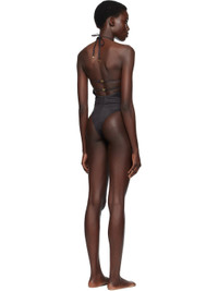Stretch nylon jersey one-piece swimsuit. Logo pattern printed throughout. · Self-tie halter strap · Round neck · Straps with logo hardware at open back · Fully lined Supplier color: Black Body: 78% polyamide, 22% elastane. Lining: 84% polyester, 16% elastane. Made in Italy 252886F103000