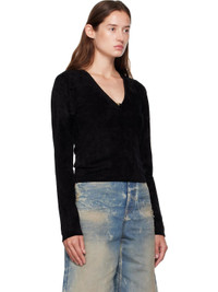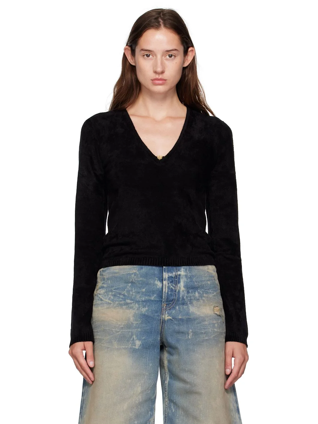 Viscose-blend velour top. · Logo hardware at V-neck · Rib-knit hem and cuffs Supplier color: Black 63% viscose, 37% polyamide. Made in Italy 252886F110015