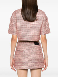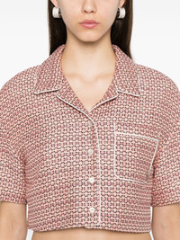 boucle cropped shirt Highlights - Flamingo pink - Boucle construction - Cropped - Front button fastening - Camp collar - Drop shoulder - Short sleeves - Silver-tone logo plaque - Chest patch pocket - Satin lining - Cropped Made in Italy Composition Outer: Cotton 40%, Polyester 37%, Acrylic 13%, Polyamide 10% Lining: Viscose 100% SIZE & FIT Model measurements Height 5 ft 10 in(1.78 m) Bust/Chest 33.85 in(86 cm) Hips 36.61 in(93 cm) Waist 26.77 in(68 cm) FittingInformation Designed to be unstructured, offering a loose fit throughout Cropped in length Made from a midweight non-stretch fabric