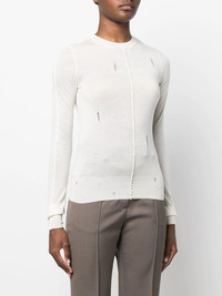 distressed cashmere jumper white cashmere distressed effect crew neck long sleeves straight hem Made in Italy Composition Cashmere 100% SIZE & FIT Model measurements Height 5 ft 10 in(1.77 m) Bust/Chest 34.64 in(88 cm) Hips 35.43 in(90 cm) Waist 24.8 in(63 cm) FittingInformation This piece fits true to size. We recommend you get your regular size Cut for a slim fit Made with a mid-weight fabric Washing instructions Hand Wash