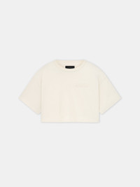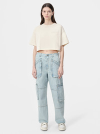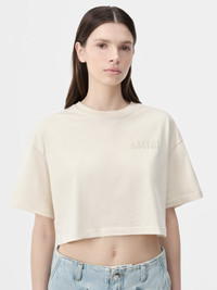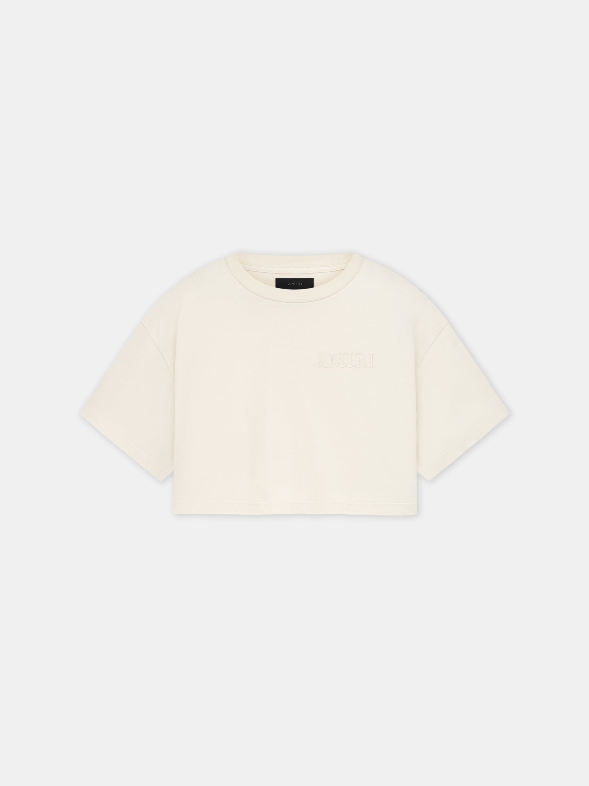 MONOCHROME EMBROIDERY ACCENTS FAMILIAR FORMS FOR PRE-FALL 2024 WOMENSWEAR. THE AMIRI EMBROIDERED CROPPED TEE IS CUT IN A SLIGHTLY OVERSIZED SILHOUETTE AND FINISHED WITH THE EMBROIDERED CORE LOGO ON THE CHEST AND BACK. PRE-FALL 2024 COLLECTION MADE IN ITALY 100% COTTON