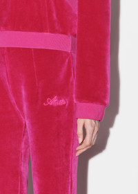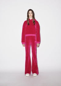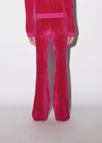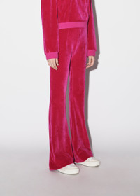 WOMENS FLARE LEGGING IN FUSCHIA MADE IN ITALY VELOUR MODEL WEARS A SIZE SMALL 100% COTTON DRY CLEAN RECOMMENDED