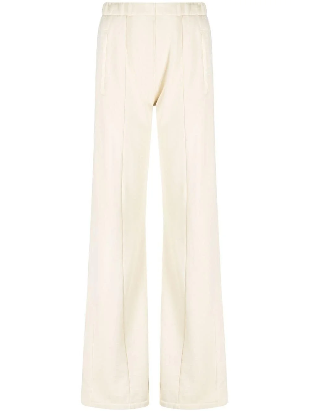 flared-leg jersey trousers alabaster cotton/lyocell jersey knit logo patch to the rear elasticated waistband two side zip-fastening pockets two rear jetted pockets flared leg Made in United States Composition Outer: Cotton 100% Lining: Lyocell 100% SIZE & FIT Model measurements Height 5 ft 11 in(1.8 m) Bust/Chest 31.49 in(80 cm) Hips 36.61 in(93 cm) Waist 24.4 in(62 cm) FittingInformation This piece fits true to size. We recommend you get your regular size Designed to be fitted at the waist and hips, loose over the leg Made with a mid-weight fabric Washing instructions Dry Clean Only