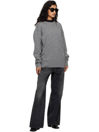 Knit wool sweater. · Rib-knit crewneck, hem, and cuffs · Logo applique at chest and back · Dropped shoulders Supplier color: Grey 100% wool. Made in Italy 261886F096000