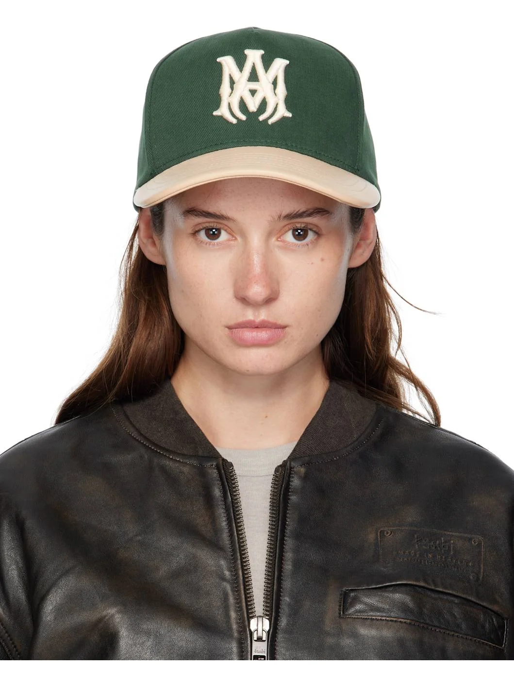 Cotton canvas cap. · Embroidered eyelets at crown · Embroidered logo at face · Grained leather curved brim · Logo patch at back face · Logo plaque at snapback fastening · Twill browband Supplier color: Dark palm Body: 100% cotton. Trim: 100% leather. Made in United States 252886F016000