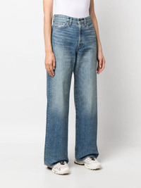 high-rise wide-leg jeans Highlights - Light blue - Cotton - Washed denim - Concealed fly and button fastening - Belt loops - Classic five pockets - Wide leg Made in United States Composition Cotton 100% SIZE & FIT Model measurements Height 5 ft 10 in(1.78 m) Bust/Chest 30.7 in(78 cm) Hips 36.22 in(92 cm) Waist 25.59 in(65 cm) Washing instructions Dry Clean Only