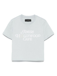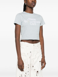 Hollywood Cafe T-shirt Highlights - Baby blue - Crew neck - Short sleeves - Cropped Made in Italy Composition Cotton 100% SIZE & FIT Model measurements Height 5 ft 11 in(1.8 m) Bust/Chest 32.67 in(83 cm) Hips 36.22 in(92 cm) Waist 24.4 in(62 cm) FittingInformation Designed for a slim fit that sits just away from the body offering a close yet comfortable fit Cropped in length Made from a midweight non-stretch fabric, this piece offers minimal elasticity when worn