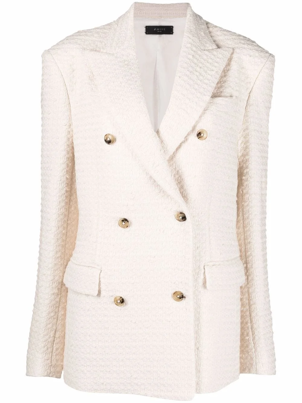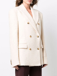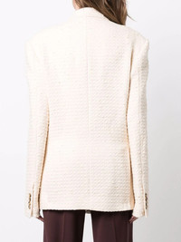 knitted double-breasted blazer cream cotton-wool blend knitted construction double-breasted button fastening long sleeves front flap pockets Made in Italy Composition Outer: Cotton 60%, Wool 28%, Polyester 12% Lining: Viscose 100% SIZE & FIT Model measurements Height 5 ft 9 in(1.75 m) Bust/Chest 32.67 in(83 cm) Hips 36.22 in(92 cm) Waist 24.8 in(63 cm) Washing instructions Dry Clean Only