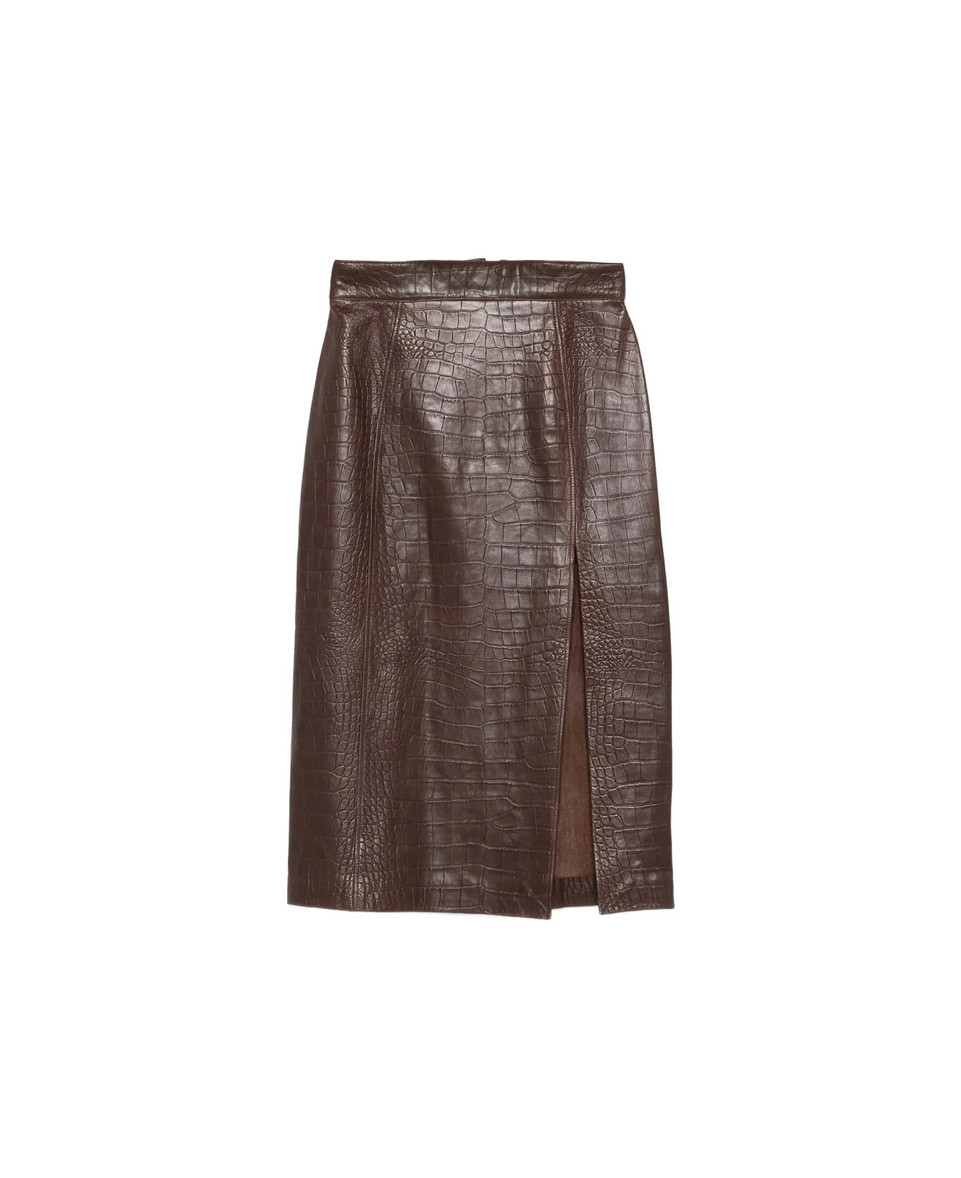 brown crocodile-effect leather side slit straight hem pencil shape Made in: Bangladesh Color: BROWN Model number: AWLTKR1009BROWN