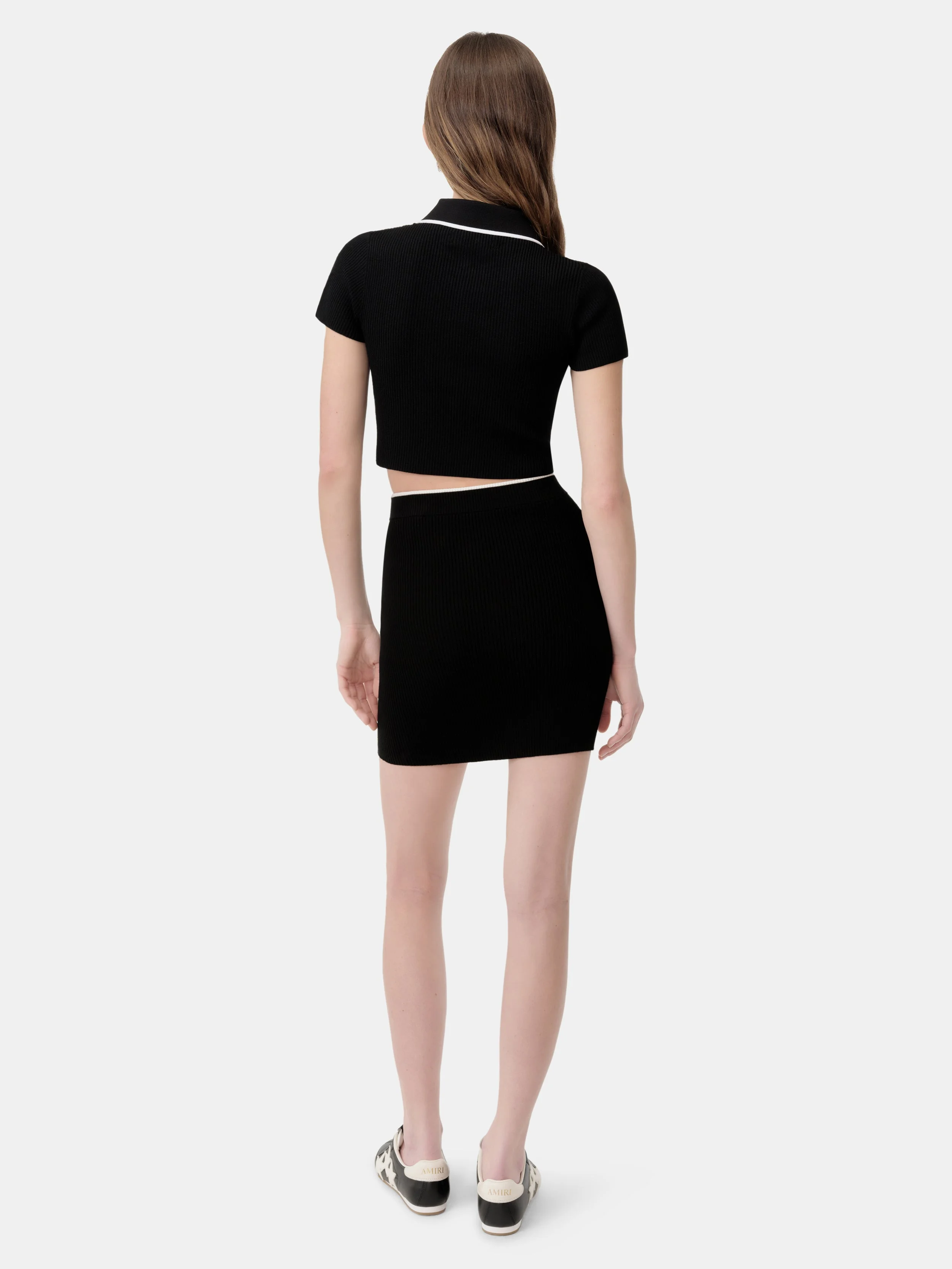 PRE-FALL 2025 WOMENSWEAR CONTINUES TO EXPLORE HOUSE SIGNATURE MOTIFS IN NOVEL INTERPRETATIONS. THE MA POLO IS DESIGNED IN A RIB KNIT AND FINISHED WITH THREE-BUTTON CLOSURE, MA ICON EMBROIDERY, AND CONTRAST TIPPING AT THE COLLAR. PRE-FALL 2025 COLLECTION MADE IN ITALY 70% VISCOSE, 30% POLYESTER THIS GARMENT HAS UNDERGONE A SPECIAL PROCESS WHICH RESULTS IN INTENTIONAL VARIATIONS OF SHADING AND COLOR, AND ADD TO THE PIECE'S UNIQUE CHARACTERISTICS. THIS MAY LEAD TO BLEEDING OR DYE TRANSFER. PLEASE USE CAUTION WHEN WASHING OR DRY-CLEANING THIS ITEM STYLE:AWKNPO1028-001 SIZE & FIT MODEL IS WEARING SIZE XS MODEL MEASUREMENTS: HEIGHT: 5'10" CHEST: 32" WAIST: 23.5" HIP: 34.5" PRODUCT MEASUREMENTS (SIZE XS): CHEST: 12" SHOULDER: 11.375" LENGTH: 14.5" SLEEVE LENGTH: 7"