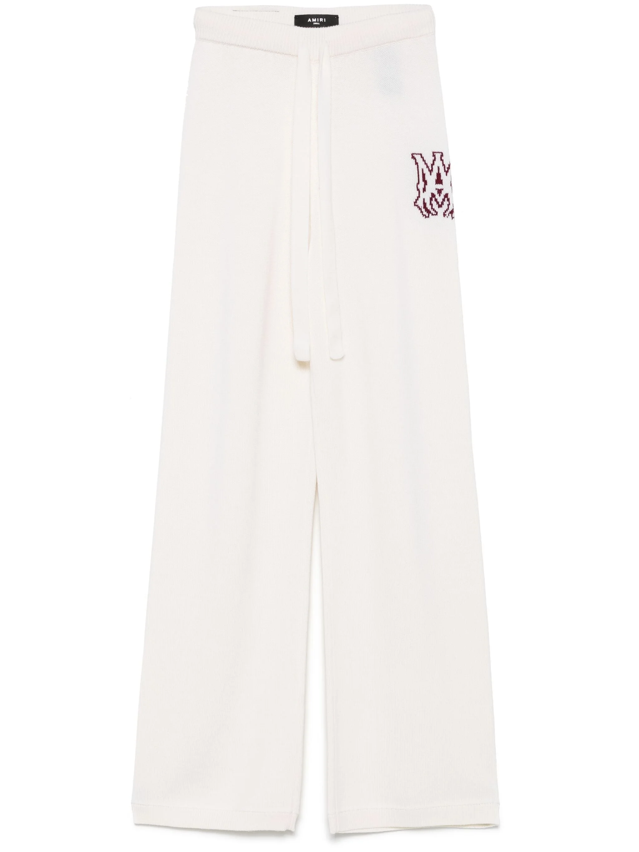 beige/bordeaux red wool fine knit jacquard MA logo motif elasticated drawstring waistband wide leg - Color: NEUTRALS - Made in: Italy - Designer Style ID: AWKNSP1007 ALABA Composition and care Wool: 100.0%