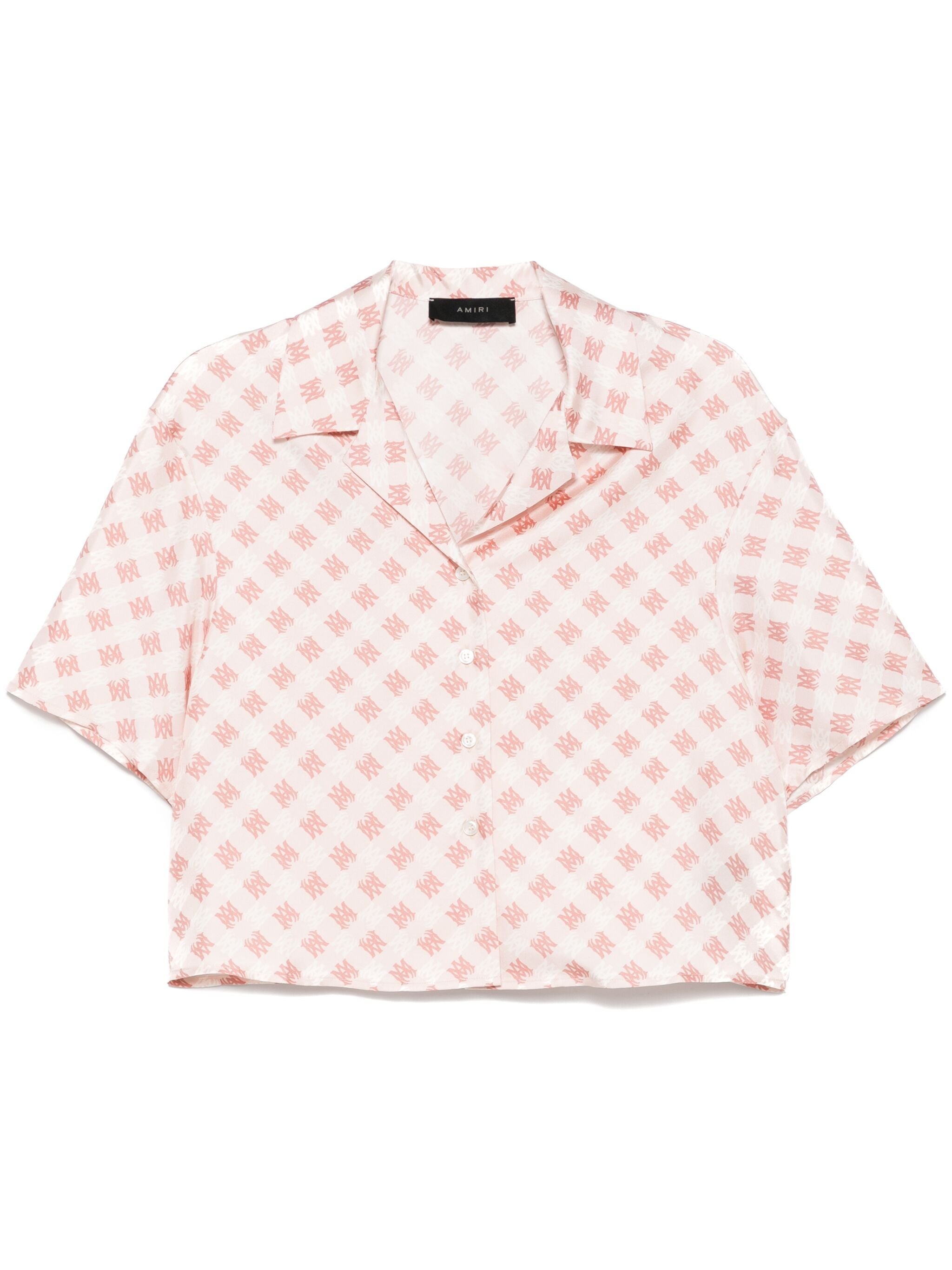 peach pink/light pink/white silk front button fastening all-over MA Icon logo print spread collar short sleeves straight hem - Color: PINK - Made in: Italy - Designer Style ID: AWSTCA1023 PEACH Composition and care Silk: 100.0%