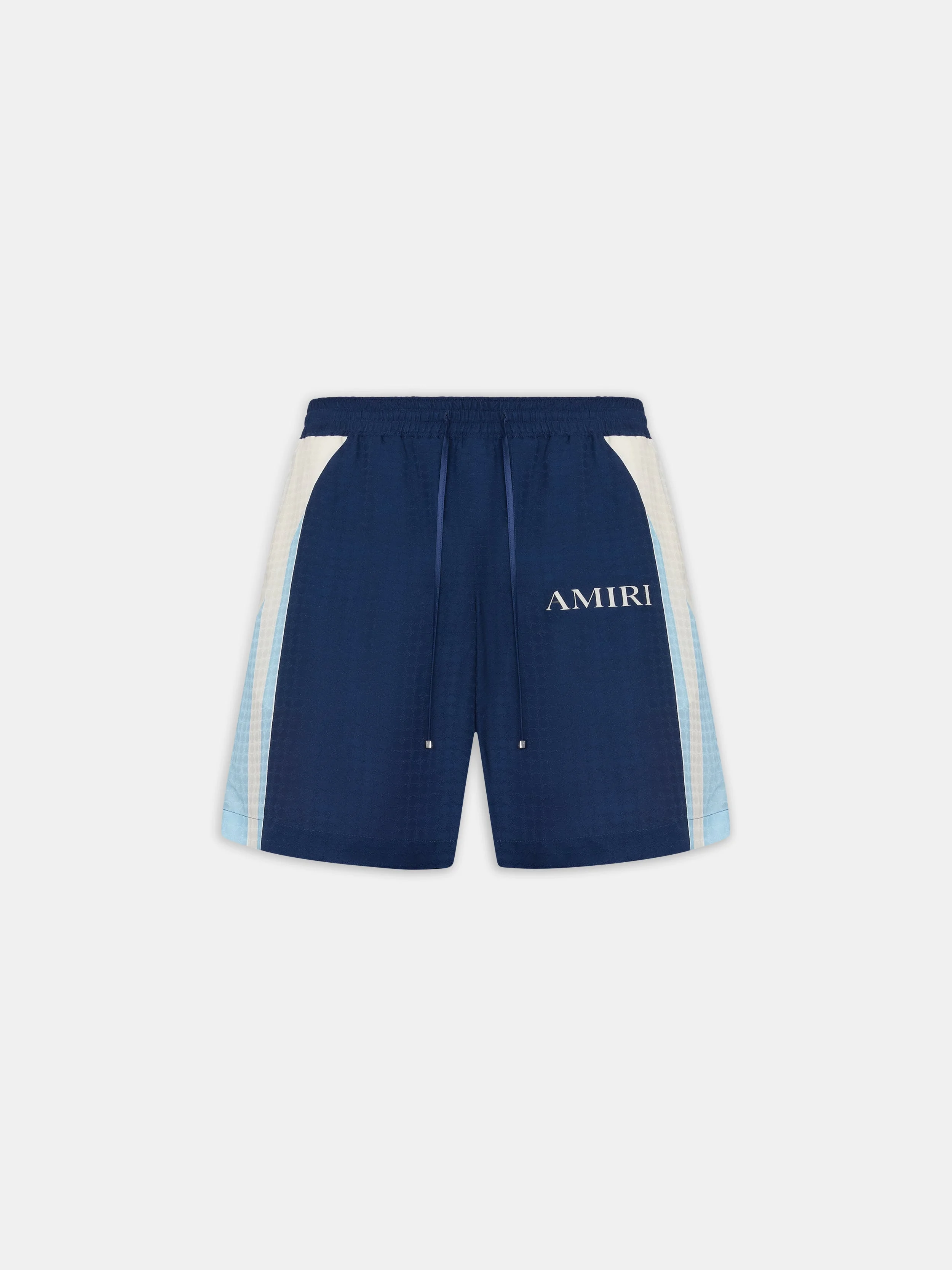 THE HOUSE'S SIGNATURE MA QUAD MONOGRAM PRINT ILLUSTRATES FOUNDATIONAL SILHOUETTES FOR PRE-SPRING 2026 MENSWEAR. THE MA QUAD PANEL SHORT FEATURES A COLOR BLOCK DESIGN WITH LOGO GRAPHICS, SIDE SEAM POCKETS, AND AN ELASTIC WAISTBAND WITH DRAWCORD. PRE-SPRING 2026 COLLECTION MADE IN ITALY 100% VISCOSE THIS GARMENT HAS UNDERGONE A SPECIAL PROCESS WHICH RESULTS IN INTENTIONAL VARIATIONS OF SHADING AND COLOR, AND ADD TO THE PIECE'S UNIQUE CHARACTERISTICS. THIS MAY LEAD TO BLEEDING OR DYE TRANSFER. PLEASE USE CAUTION WHEN WASHING OR DRY-CLEANING THIS ITEM STYLE:AMBMSO1023-508 SIZE & FIT MODEL MEASUREMENTS: HEIGHT: 6'1" CHEST: 34.5" WAIST: 26.5" HIP: 34"