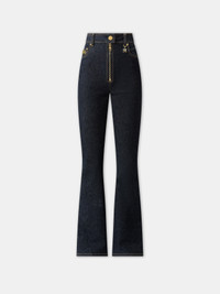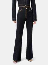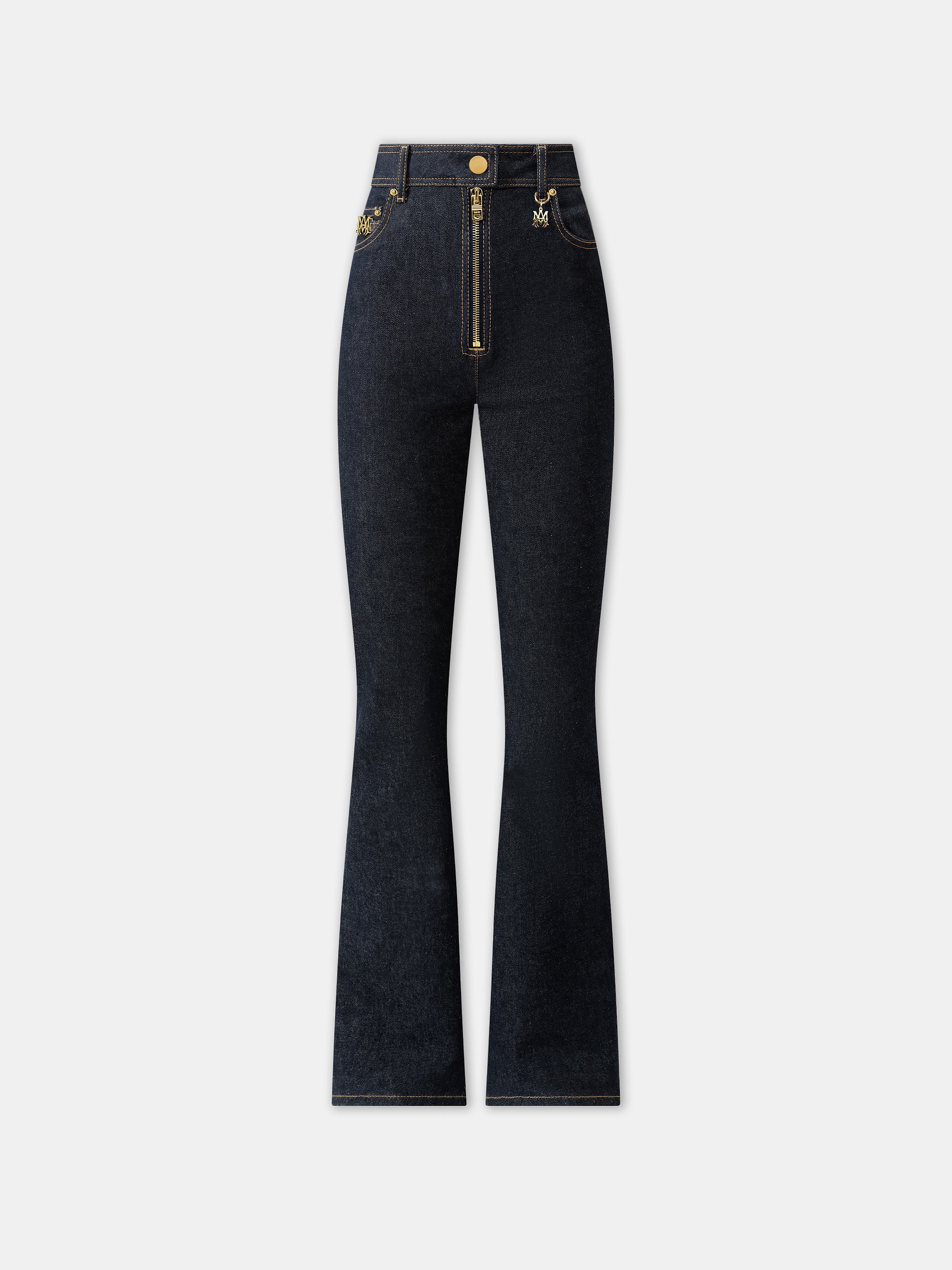 INSPIRED BY UTILITARIAN WORKSUITS, THE PRE-FALL 2025 COLLECTION HONORS AND ELEVATES HERITAGE DENIM. THE ZIP-UP FLARE JEAN IS ILLUSTRATED WITH CONTRAST TOPSTITCHING AND FINISHED WITH CLASSIC FIVE-POCKET CONSTRUCTION AND MA ICON HARDWARE. PRE-FALL 2025 COLLECTION MADE IN ITALY 99% COTTON, 1% ELASTANE THIS GARMENT HAS UNDERGONE A SPECIAL PROCESS WHICH RESULTS IN INTENTIONAL VARIATIONS OF SHADING AND COLOR, AND ADD TO THE PIECE'S UNIQUE CHARACTERISTICS. THIS MAY LEAD TO BLEEDING OR DYE TRANSFER. PLEASE USE CAUTION WHEN WASHING OR DRY-CLEANING THIS ITEM STYLE:AWDNFR1016-402 SIZE & FIT MODEL IS WEARING SIZE XS MODEL MEASUREMENTS: HEIGHT: 5'9.5” CHEST: 30" WAIST: 23" HIP: 34.5" PRODUCT MEASUREMENTS (SIZE XS): WAIST: 26.5" RISE: 10.75" HIP: 17.75" INSEAM: 34.25"