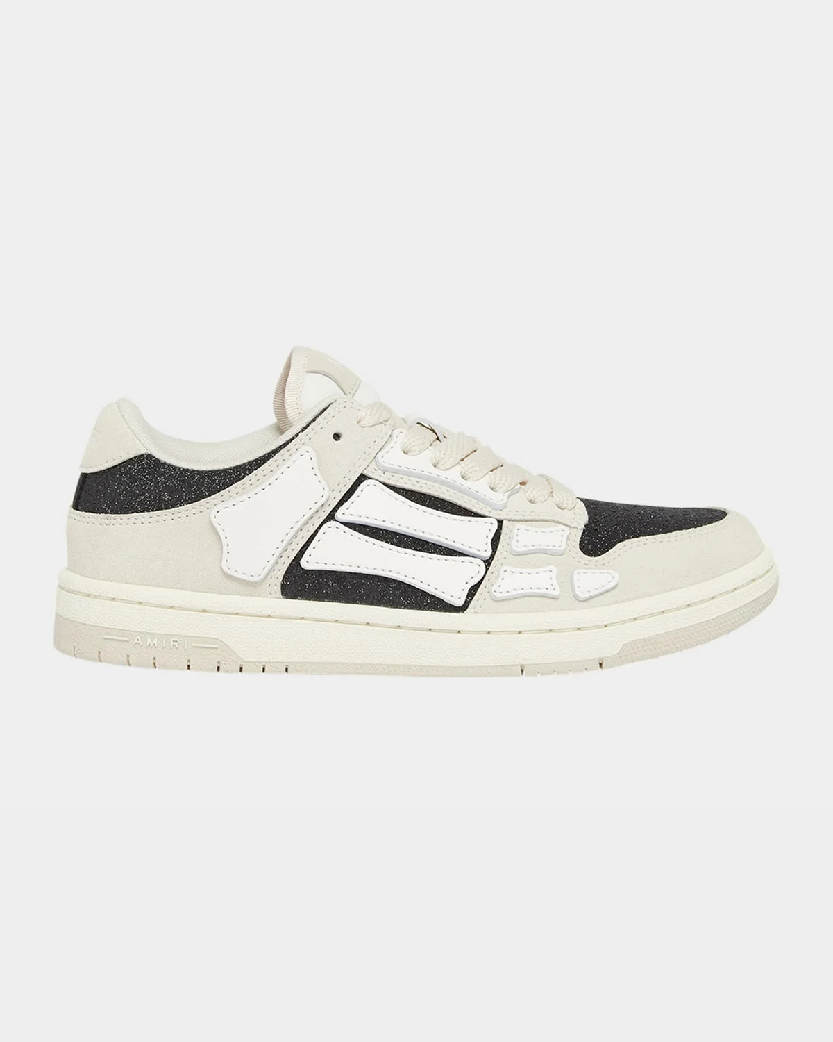 Amiri contrast shimmer and matte leather lowtop sneakers with skeleton bones applique Flat heel Perforated round toe Laceup vamp with logo accent Lining: Polyester Rubber outsole Imported