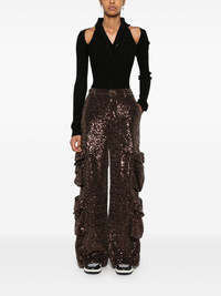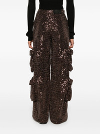 sequin cargo pants Highlights - Cedar brown - Sequin design - Button fly fastening - Belt loops - Two side slit pockets - Four side cargo pockets - Two rear patch pockets - Partial lining - Straight leg Made in Italy Composition Outer: Polyester 100% Lining: Polyester 88%, Elastane 12% SIZE & FIT Model measurements Height 5 ft 10 in(1.77 m) Bust/Chest 33.07 in(84 cm) Hips 37 in(94 cm) Waist 24.8 in(63 cm) FittingInformation Designed with a wide-leg cut, these trousers allow for a close fit at the waist and offer a loose and roomy fit over the leg Made from a midweight fabric