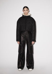 AW22 COLLECTION SHORT PUFFER PARKA WITH FRONT ZIPPER POCKETS. ADJUSTABLE FUNNEL COLLAR MADE IN ITALY REGULAR FIT MODEL WEARS A SIZE SMALL ZIPPER CLOSURE 100% COTTON DRY CLEAN RECOMMEND