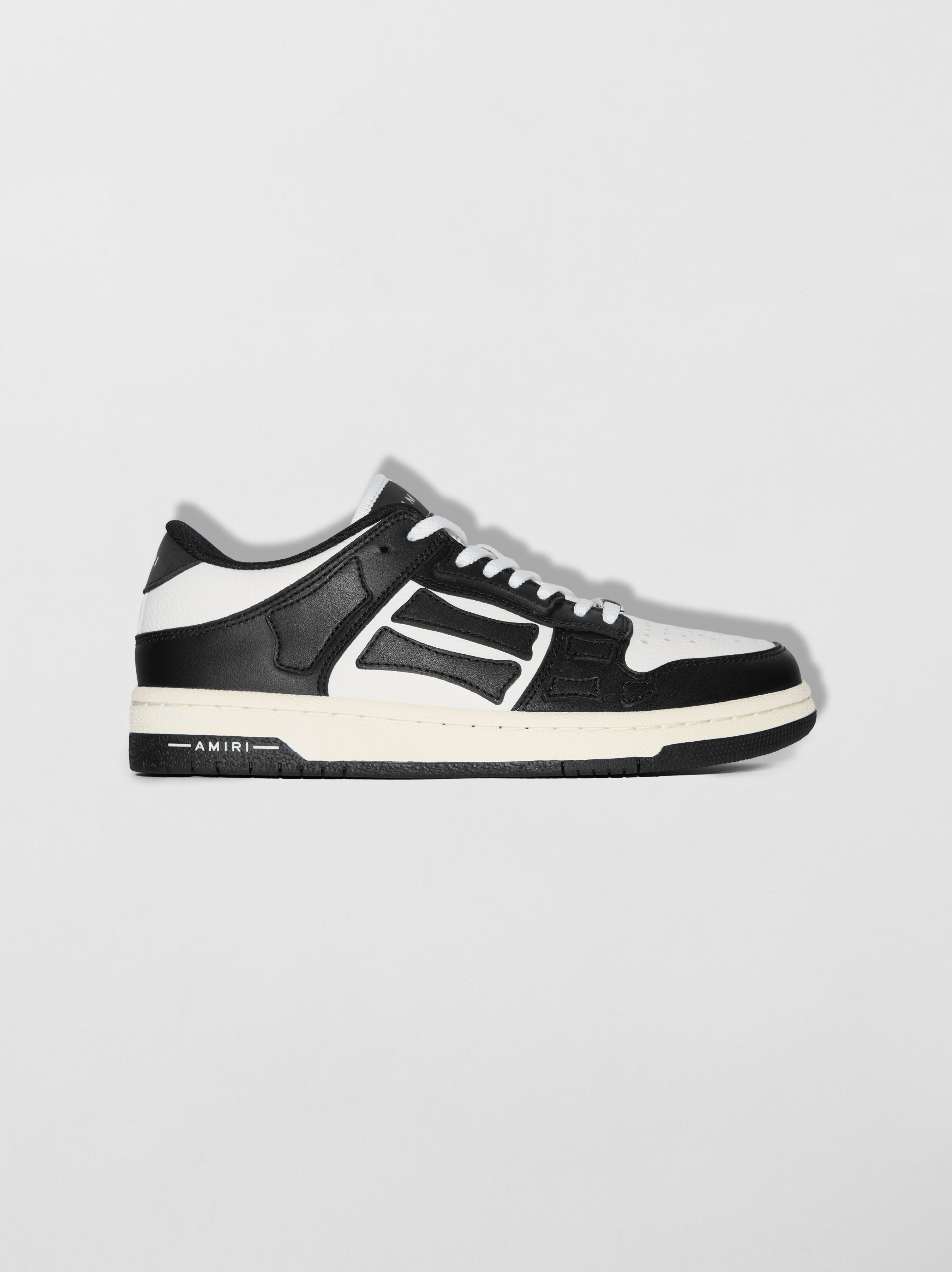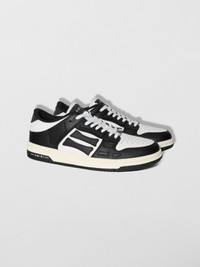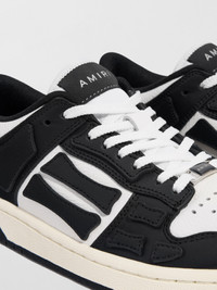 AW22 COLLECTION SKEL TOP LOW SNEAKER. FEATURING AMIRI LOGO TONGUE. HAND CUT AND EDGE PAINTED LEATHER BONES APPLIQUÉ GENUINE LEATHER UPPER MOLDED EVA FOOTBED MADE IN CHINA SMOOTH PEBBLED LEATHER WITH NYLON FITS TRUE TO SIZE. ORDER YOUR NATURAL SIZE ONLY AVAILABLE IN FULL SIZES. CHOOSE YOUR NEAREST WHOLE SIZE IF YOU WEAR A HALF SIZE DETAILS & CARE ATHLETIC MESH LINING VULCANIZED RUBBER OUTSOLE WASH WITH GENTLE FOOTWEAR SOAP. DO NOT MACHINE WASH 100% LE, 100% RUBBER