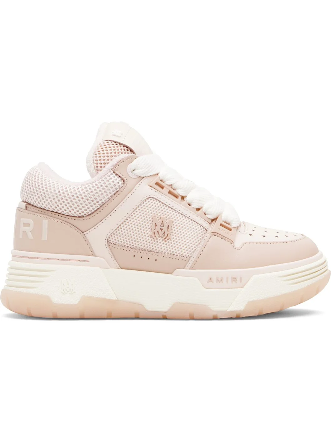 Low-top paneled grained leather and mesh sneakers. · Graphic perforations at toe · Lace-up closure · Logo patch and hardware at tongue · Padded tongue and collar · Logo hardware at outer side · Perforations at sides · Logo embossed at heel counter · Terrycloth lining · Logo embossed at textured rubber midsole · Treaded rubber sole Supplier color: Evening sand Upper: leather, textile. Sole: rubber. Made in Viet Nam 252886F128026