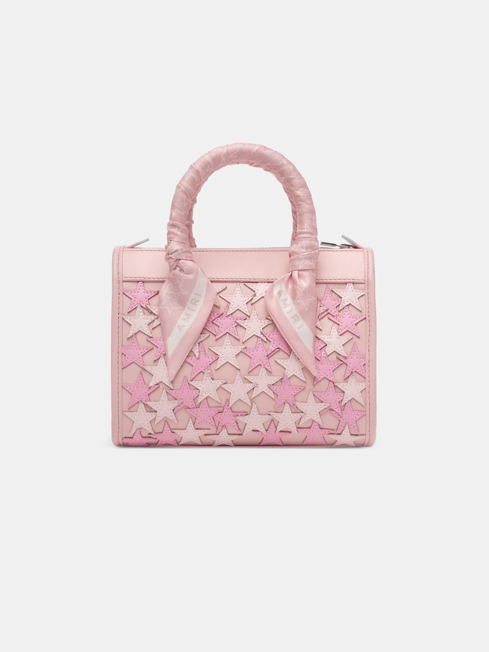 HOUSE SIGNATURE MOTIFS ADORN ICONIC FORMS IN NEW, SEASONAL FABRICATIONS FOR PRE-FALL 2024. THE STARS MICRO TRIANGLE BAG IS DECORATED WITH LEATHER STAR APPLIQUÉS AND FEATURES TOP HANDLES WITH TIED STAR-PATTERNED SCARF ACCENTS AND A DETACHABLE LEATHER SHOULDER STRAP. PRE-FALL 2024 COLLECTION MADE IN ITALY 100% LEATHER