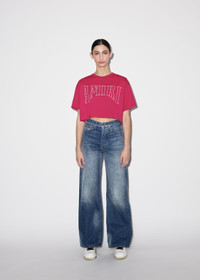 WOMENS SUN CROPPED TEE MADE IN ITALY COTTON TERRY MODEL WEARS A SIZE SMALL 100% COTTON DRY CLEAN RECOMMENDED